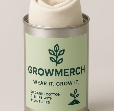 Sustainable tees with seeds inside metal cans—fashion that blooms.